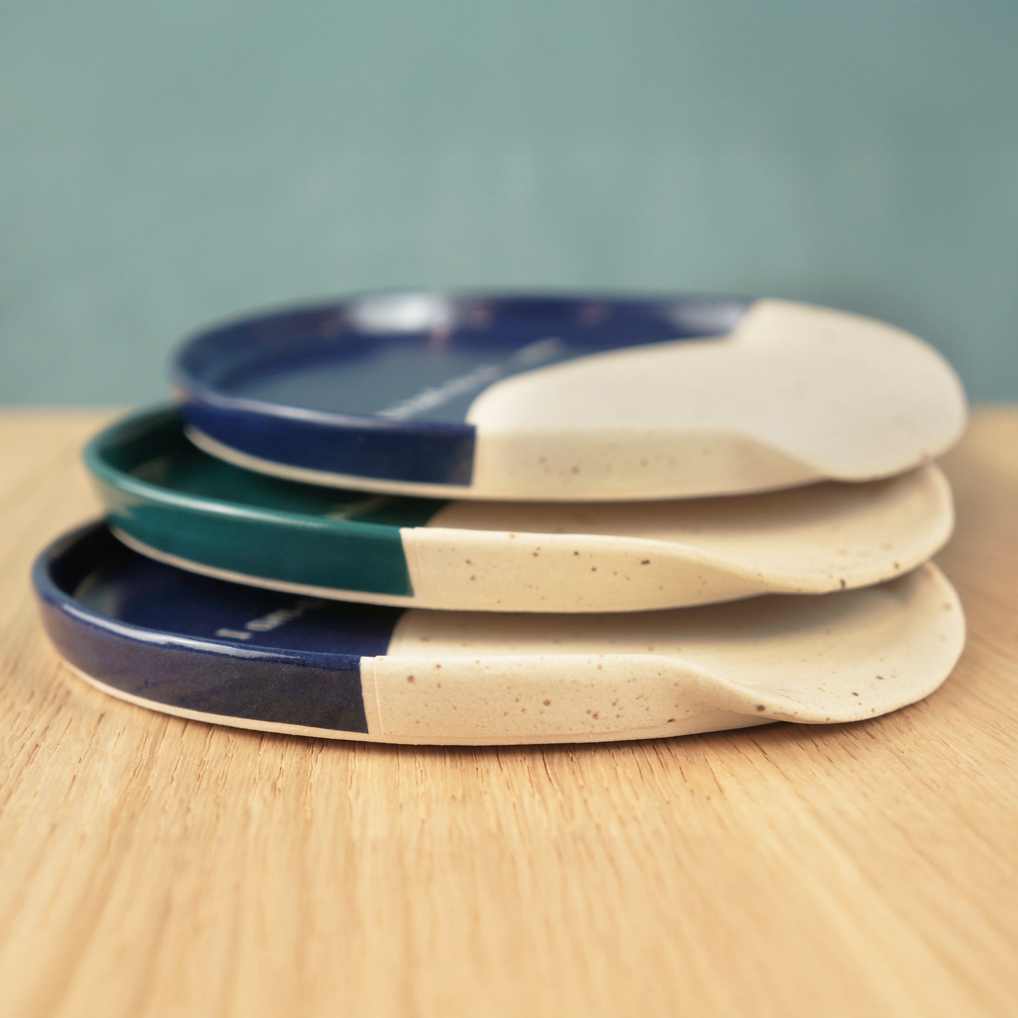 Made from stoneware and glazed half in a cream speckle matt and half in a teal glaze glaze/ Food and dishwasher safe.