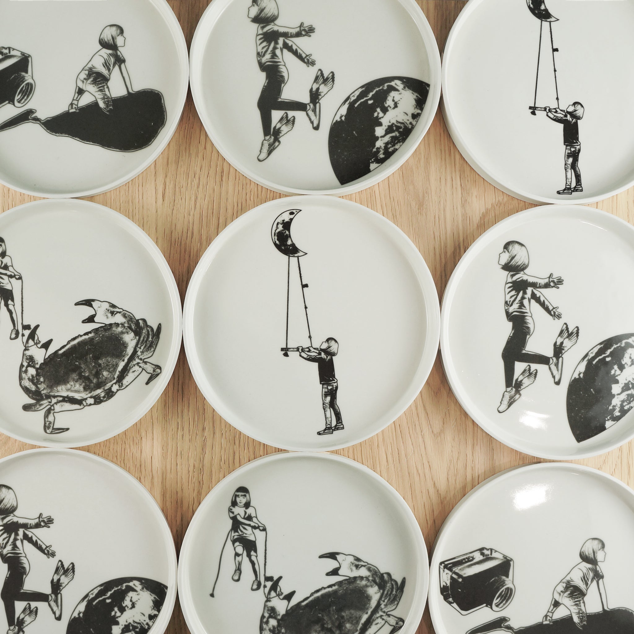 I design and hand make every piece in my studio in Bucks. These are made from porcelain slip clay with a glossy clear finish inside and a matt unglazed outside. They are food safe and can go in the dishwasher. They are 16cm wide and 1.5cm in height.